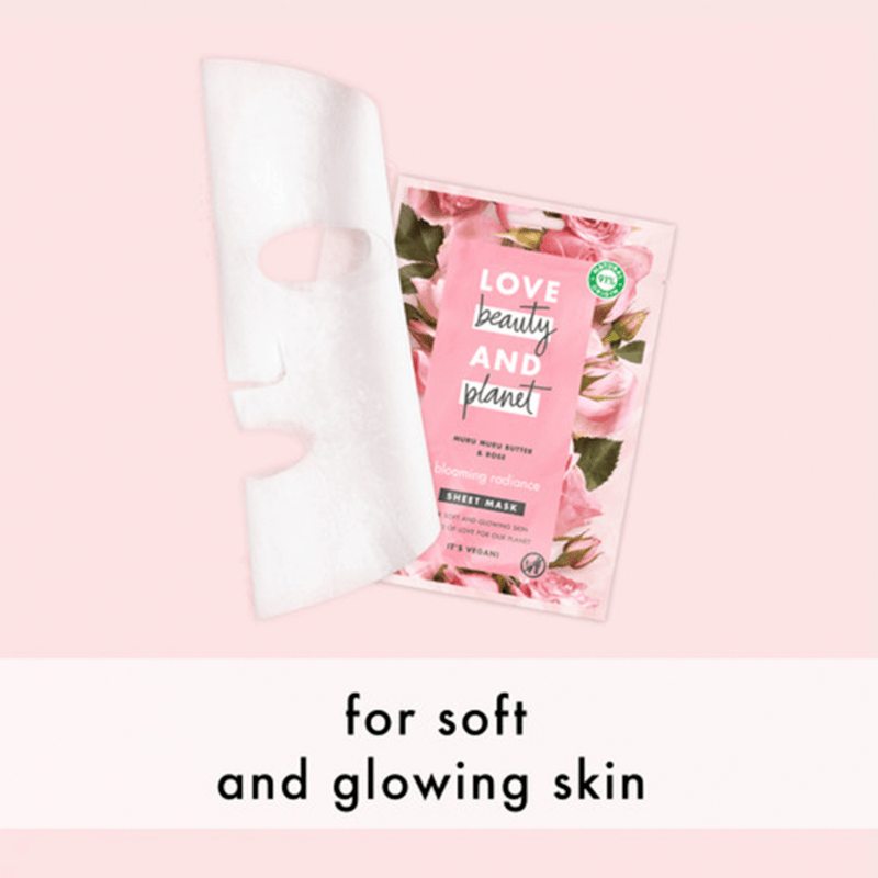 Love beauty and planet muru muru butter & rose sheet mask merupakan sheet mask dengan kandungan muru muru butter and rose aroma, yang lembut menyegarkan .